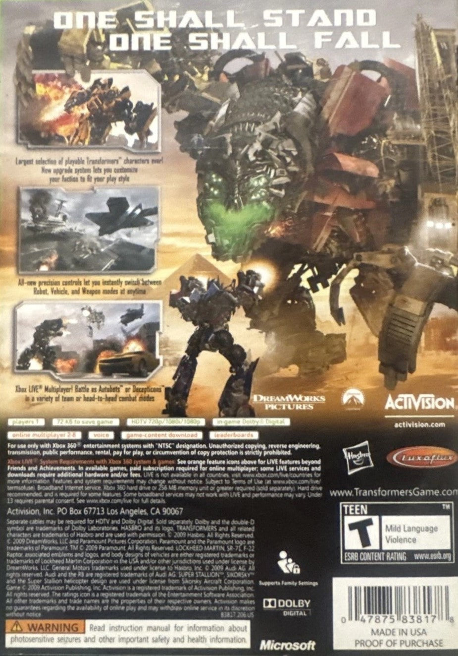 "Transformers: Revenge of the Fallen" for Xbox 360 not only delivers heart-pounding action but also a compelling narrative that can rival blockbuster movies. Engage in exhilarating multiplayer modes that challenge your skills against friends or players worldwide, adding layers of excitement and competition. With built-in Xbox Live capabilities, track your achievements and engage with a vast gaming community dedicated to Transformers fans. Whether you're a veteran gamer or new to the world of Transformers, this game is designed to captivate and entertain with its perfect blend of combat tactics and beloved characters. Dive into a world where every decision can change the fate of the universe, making "Transformers: Revenge of the Fallen" a must-have in your Xbox 360 collection.