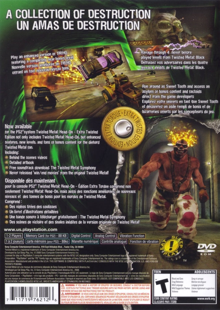 Discover the explosive action of "Twisted Metal: Head On" for the PlayStation 2, where vehicular combat meets adrenaline-pumping gameplay. This iconic game allows players to dive into a world of destruction with a diverse roster of twisted characters and uniquely designed battle vehicles, each equipped with customized weaponry. Relive the chaos through engaging single-player modes or challenge friends in exhilarating multiplayer battles that test your strategic driving skills. "Twisted Metal: Head On" offers various arenas packed with hidden surprises and destructible environments that keep players on the edge of their seats.