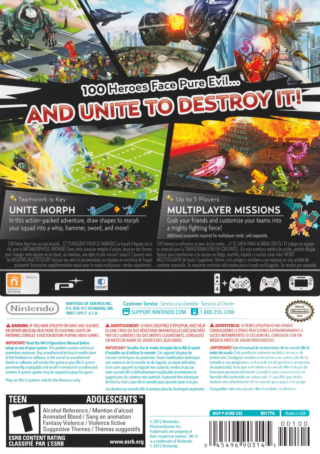 As you embark on your heroic journey, you'll discover the unique Unite Morph transformations, each providing strategic advantages in battles against formidable foes. Whether you're a veteran gamer or new to the world of Wii U, the customizable difficulty settings ensure that "Wonderful 101" offers a satisfying challenge for all skill levels. Perfect for solo or cooperative play, this game promises hours of entertainment and replayability, making it a must-have addition to any Wii U game collection. Grab your copy today and unite with the Wonderful 101 to protect Earth from impending doom!