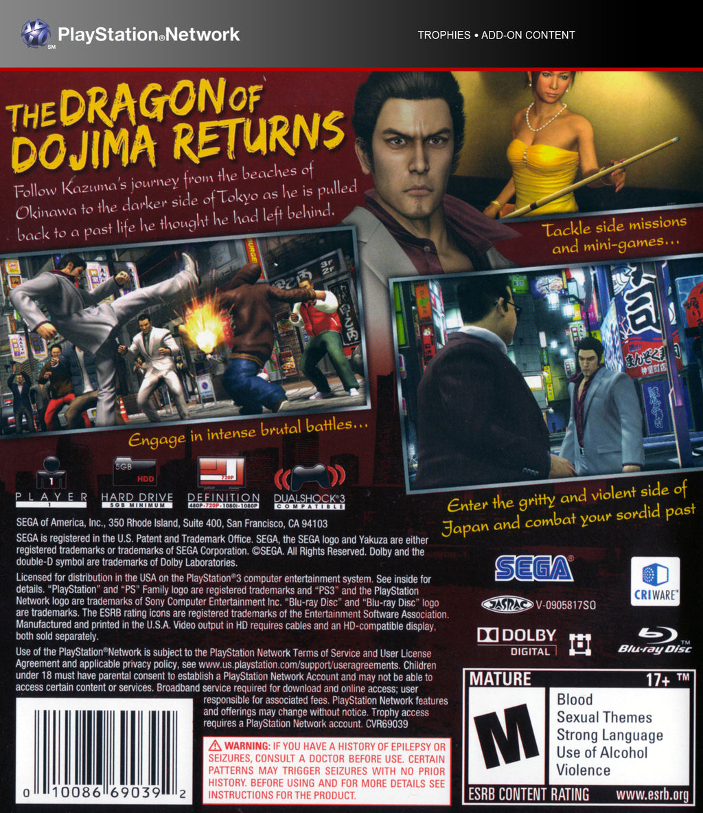 Experience the transformation of Kazuma Kiryu's journey from crime to redemption, captured with stunning graphics and authentic voice acting that bring each character to life. Whether you're exploring the bustling streets of Kamurocho or defending against rival gangs, Yakuza 3 on PS3 promises hours of thrilling gameplay packed with dramatic twists and heartfelt moments. Perfect for fans of crime dramas and open-world exploration, this game combines strategic action with an emotional depth that sets it apart in the genre. Uncover secrets, forge alliances, and engage in epic battles to protect what matters most. Optimize your gaming collection today by adding the unforgettable Yakuza 3 experience, exclusively on PS3.