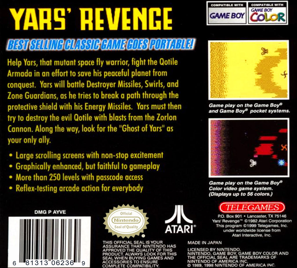 Immerse yourself in the rich, pixel-perfect worlds designed specifically for the Game Boy Color, offering a seamless blend of retro and modern gaming aesthetics. Whether you're a long-time fan of the original or discovering "Yars' Revenge" for the first time, you'll find endless enjoyment in mastering the intricate patterns and tactics essential for victory. The game also retains its competitive edge, with high score challenges that encourage repeat play and skill refinement. Perfect for gaming on the go, "Yars' Revenge" delivers a fantastic retro gaming experience that’s portable, enjoyable, and a must-have for any Game Boy Color game collection.